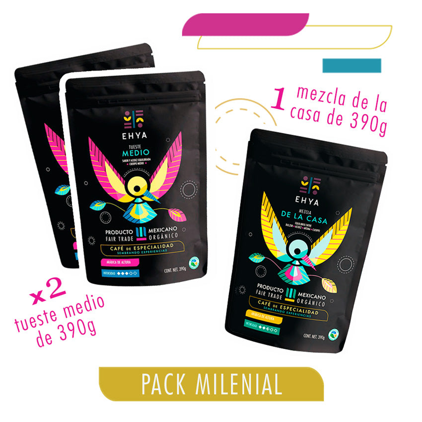 2 paquetes de Ehya café tueste medio (390 gramos cada uno).