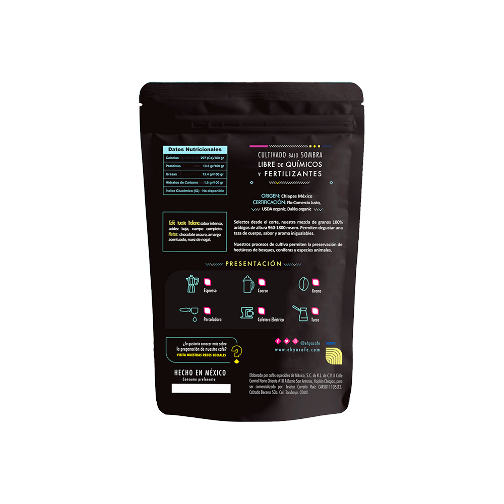- Nuestro descafeinado natural pasa por un proceso de extracción de la cafeína en el campo con agua natural, esto nos permite conservar su calidad de orgánico. Su presentación es tueste italiano, un excelente café con sabores acentuados, una bebida intensa y dulce a la vez con acidez equilibrada.